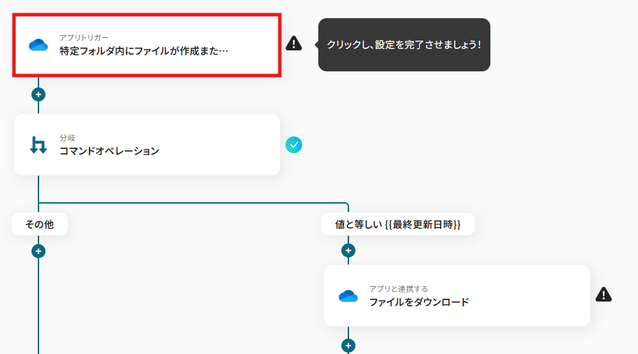 1)まずは「アプリと連携する 特定フォルダ内にファイルが作成または更新されたら」をクリックしてみましょう!