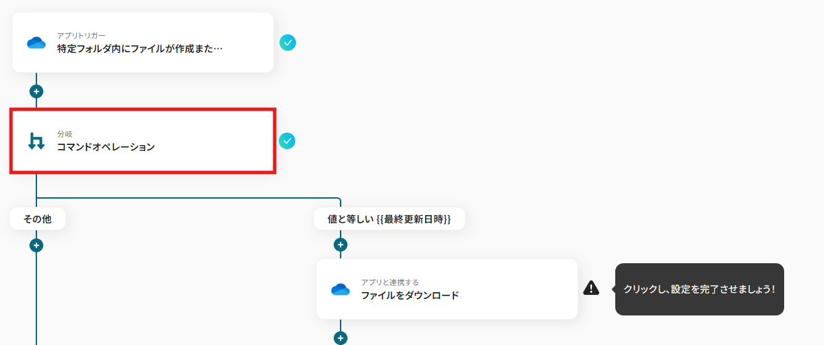 1) フローに戻り、「分岐 コマンドオペレーション」のアイコンをクリックします。