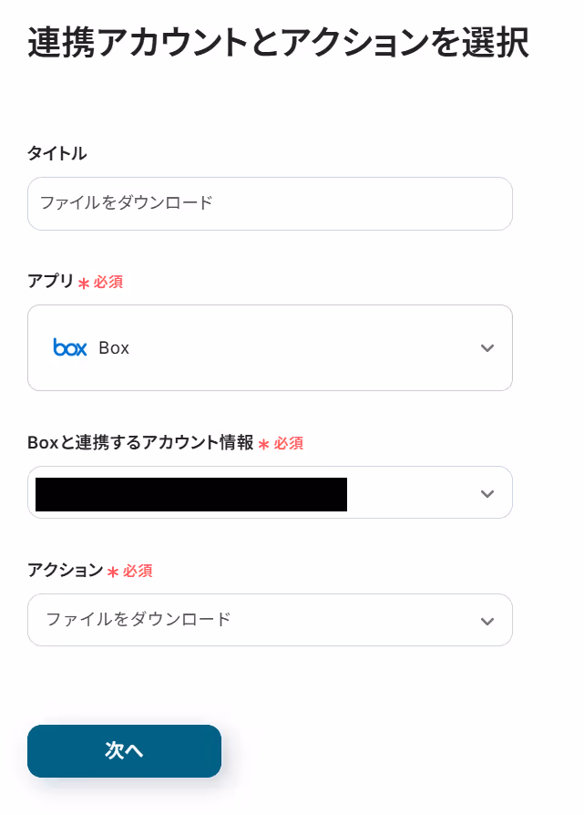 この時、「←Boxのアウトプットを設定してください」というテキストは削除しましょう。