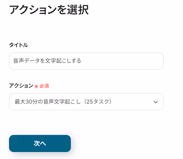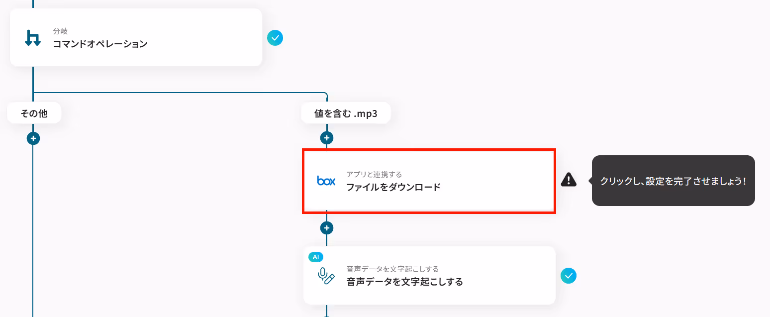 ※音声を文字起こしするAIオペレーションは、チームプランサクセスプラン限定の機能です。フリープランやミニプランでセットするとエラーになってしまうので、ご注意ください。