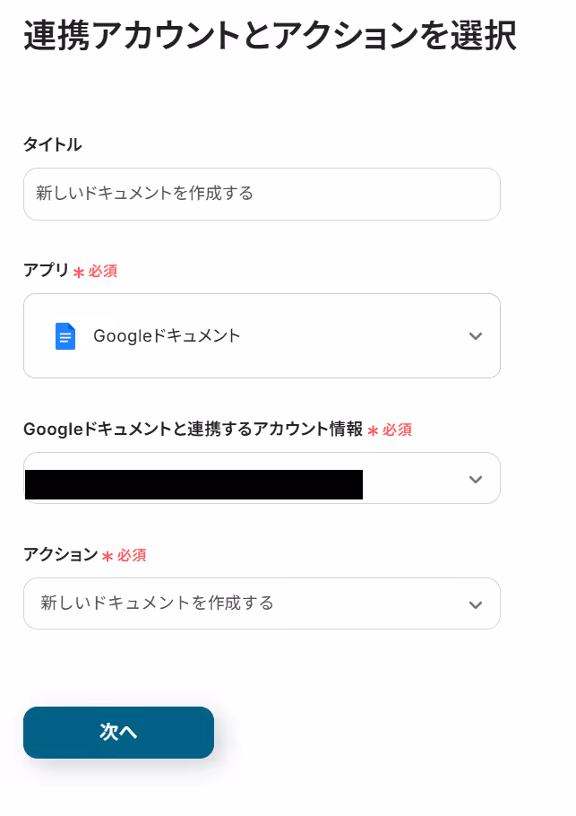 ドキュメントのタイトルは前項で取得した値から選択します。