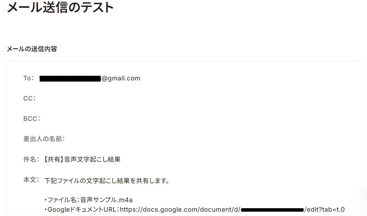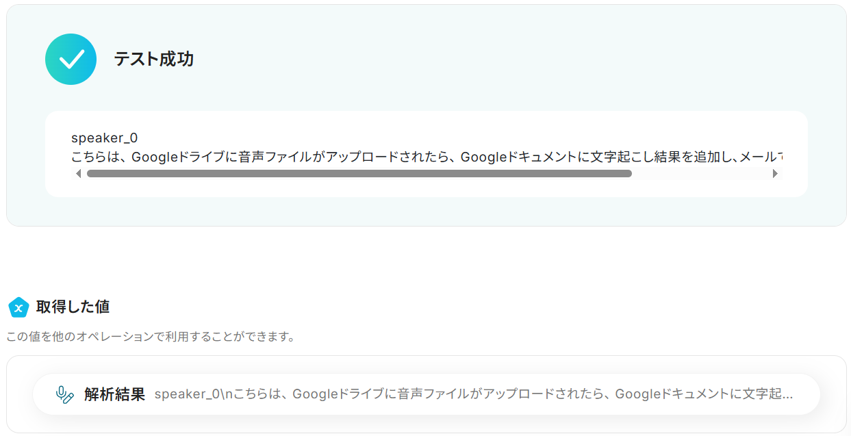 以上が、Google Driveに音声ファイルがアップロードされたら、Googleドキュメントに文字起こし結果を追加しメールで共有する方法でした!