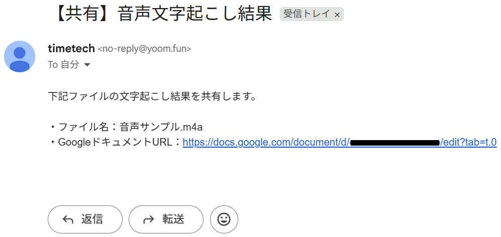 Yoomのアドレスから、Google Driveの音声ファイル情報が送信されました!