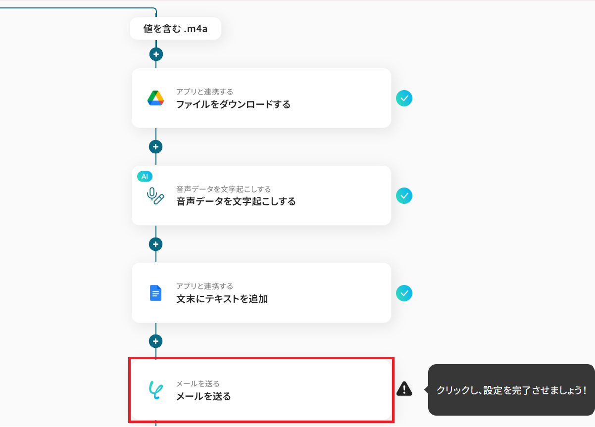 それではここから代表的な例として、Google Driveに音声ファイルがアップロードされたら、Googleドキュメントに文字起こし結果を追加しメールで共有するフローを解説していきます!