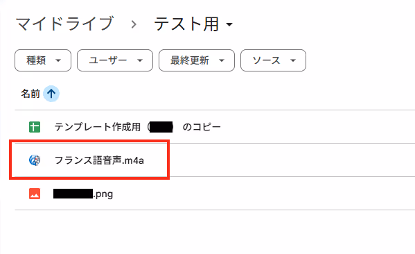 フローの作成を始める前に、あらかじめYoomと連携するGoogle Driveにフランス語のスピーチ音声を格納しておきましょう!