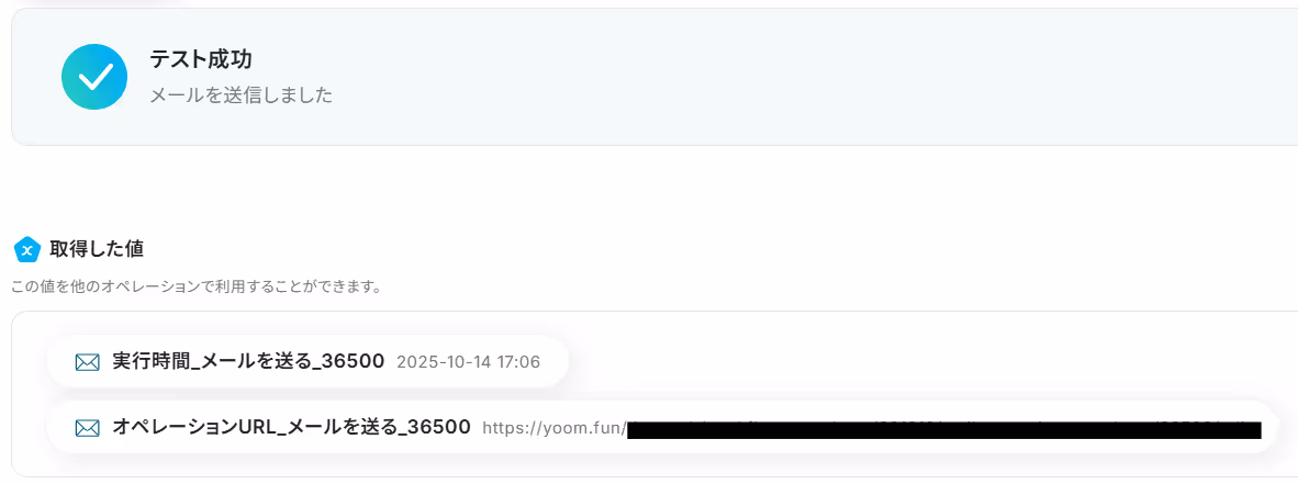 ここで取得した値を次のステップで活用し、メールで送信します。