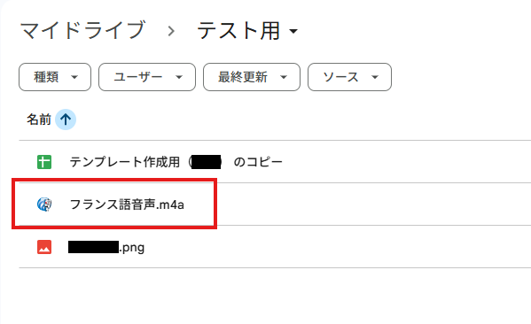 フローの作成を始める前に、あらかじめYoomと連携するGoogle Driveにフランス語のスピーチ音声を格納しておきましょう! これは連携テストの際、実際に文字起こしを行うデータとなります。 なお、この際に用意する音声の長さは30分を超えないようにすることをおすすめします。