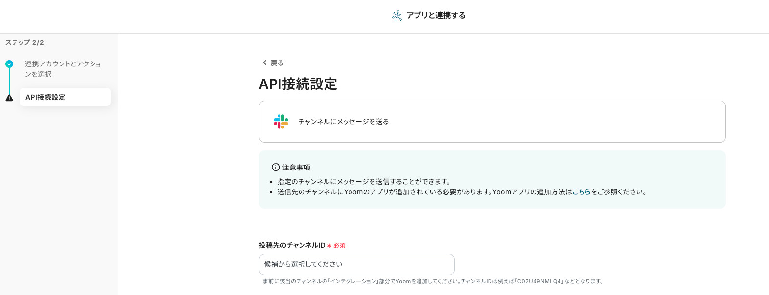 ステップ6:アプリと連携する「チャンネルにメッセージを送る」
