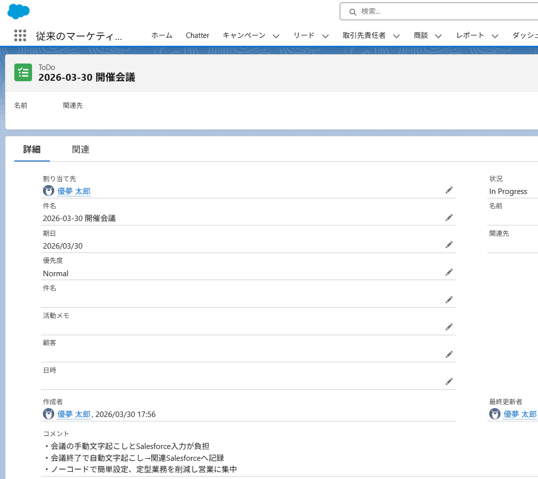 文字起こしの要約結果がSalesforceに登録されました!