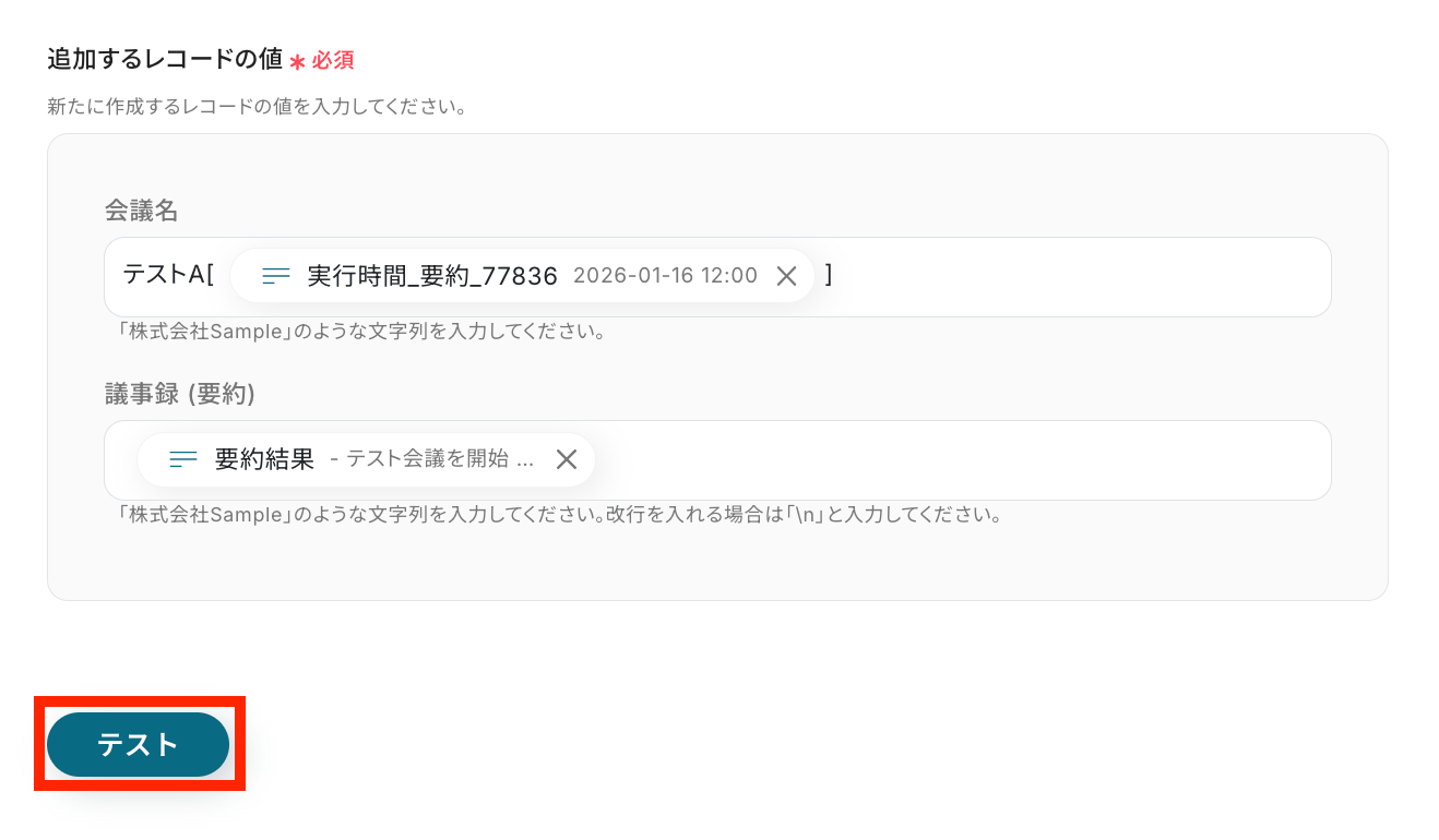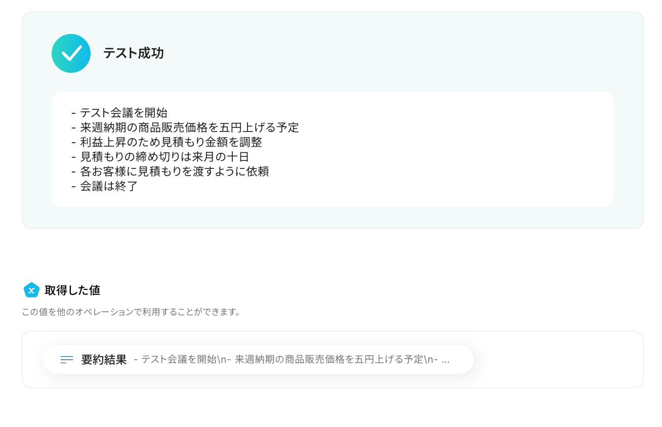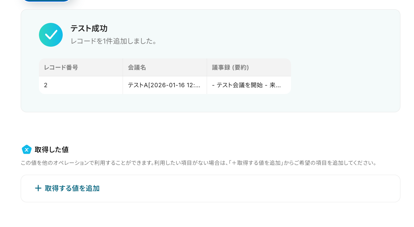 フローが正常に起動し、文字起こしされた会議の要約がkintoneに自動で登録されれば設定は完了です!