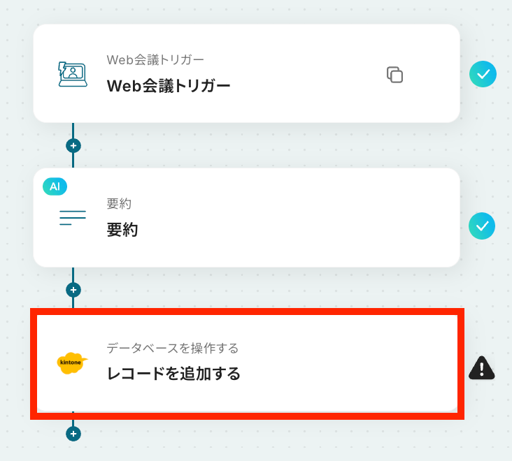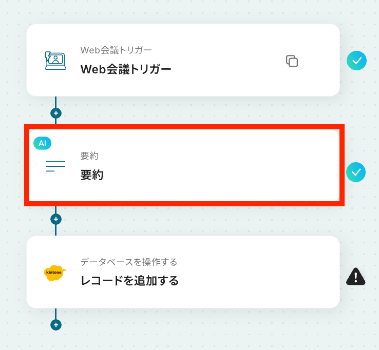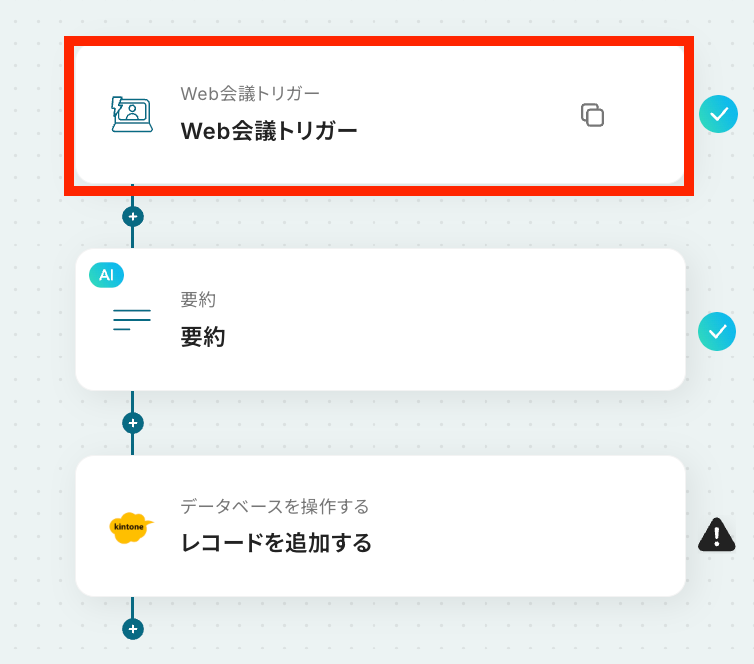 それではここから代表的な例として、Web会議が終了した際に自動で文字起こしを行い、要約した結果をkintoneに登録するフローを解説していきます!