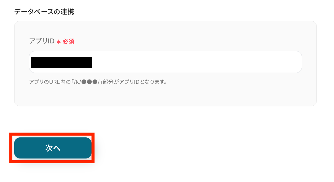 これまでに取得した値を使用して、kintoneのベータベースにレコードを追加する設定を行います。