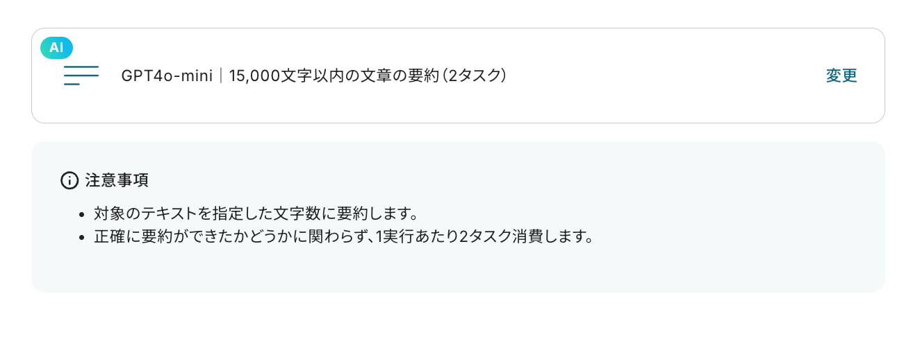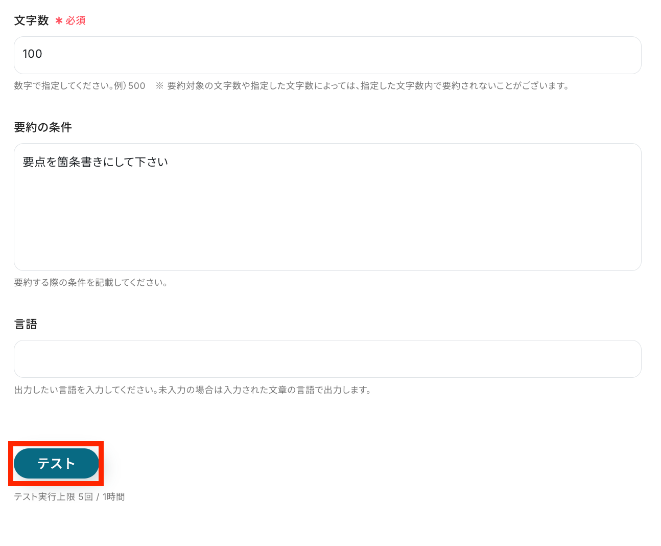 文字数を指定します。任意で要約の条件などを細かく指定が可能です。