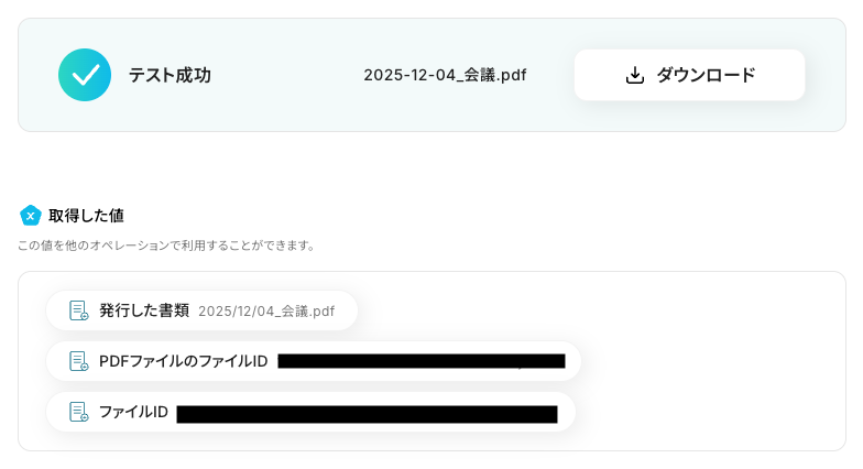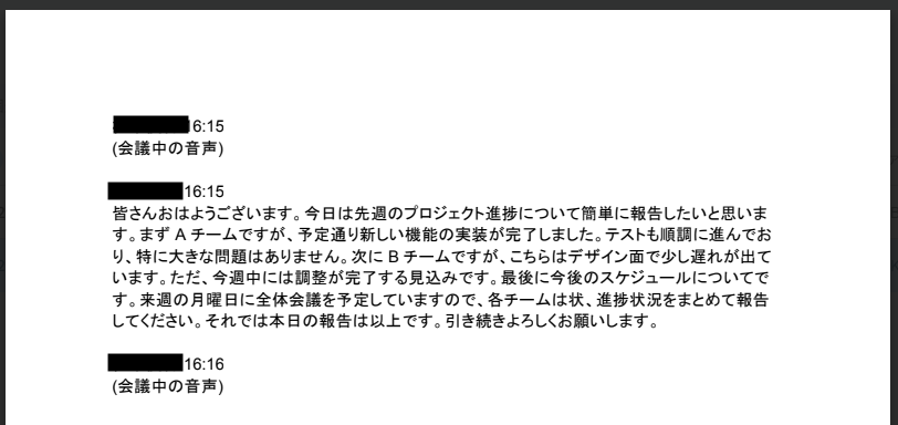 PDFファイルを開き、会議内容の文字起こしが記載されていれば、テスト成功です!