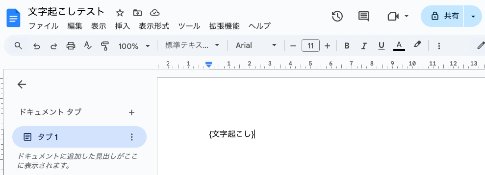 入力できたら、「文字起こしのテストを開始」をクリックしましょう。