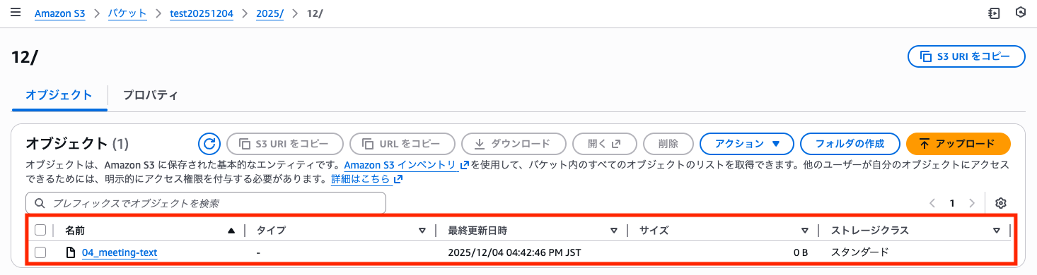 Amazon S3の指定したバケットを開き、PDFファイルがアップロードされていることを確認できたら、連携は成功です!