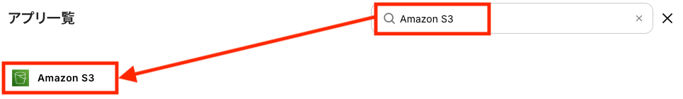 検索窓にAmazon S3と入力し、対象のアプリを選択します。