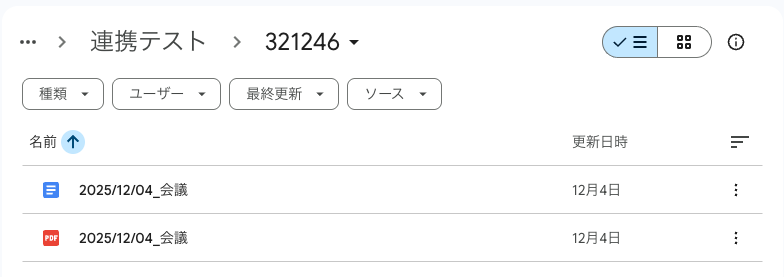 Googleドキュメント形式とPDF形式の2つのファイルが保存されます。