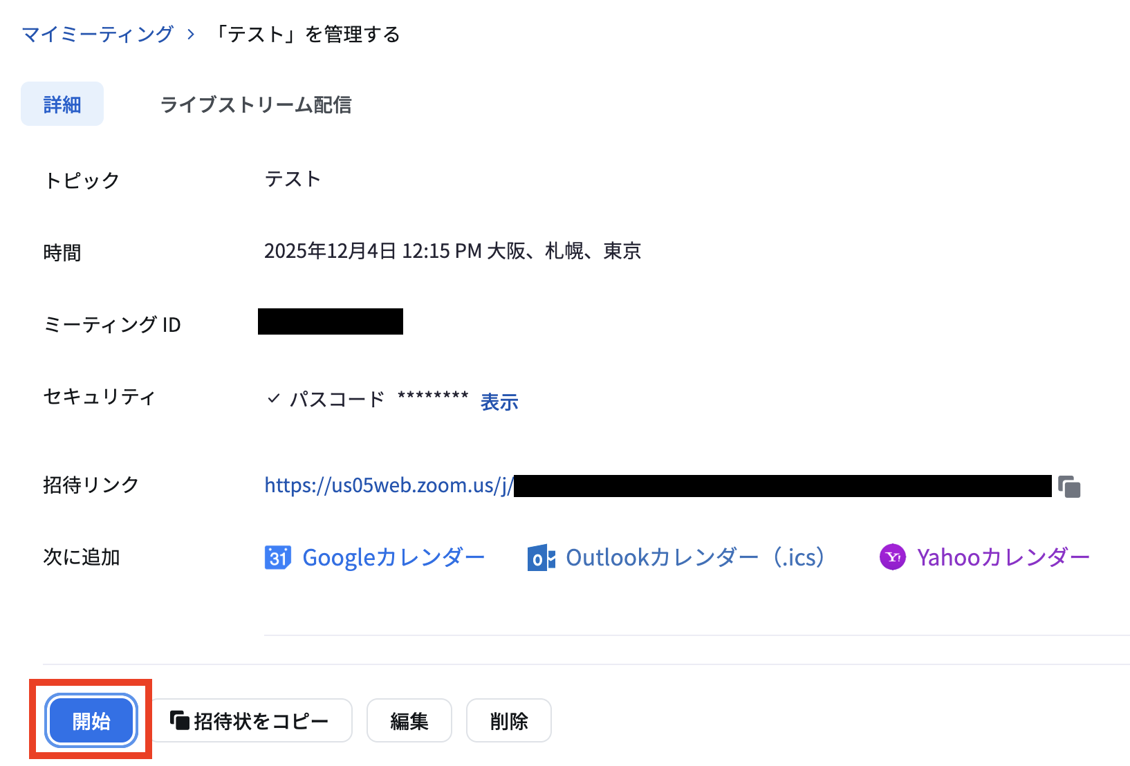 はじめに、Zoomで会議を作成します。