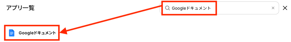 検索窓にGoogleドキュメントと入力し、検索結果に表示されたアプリを選択します。