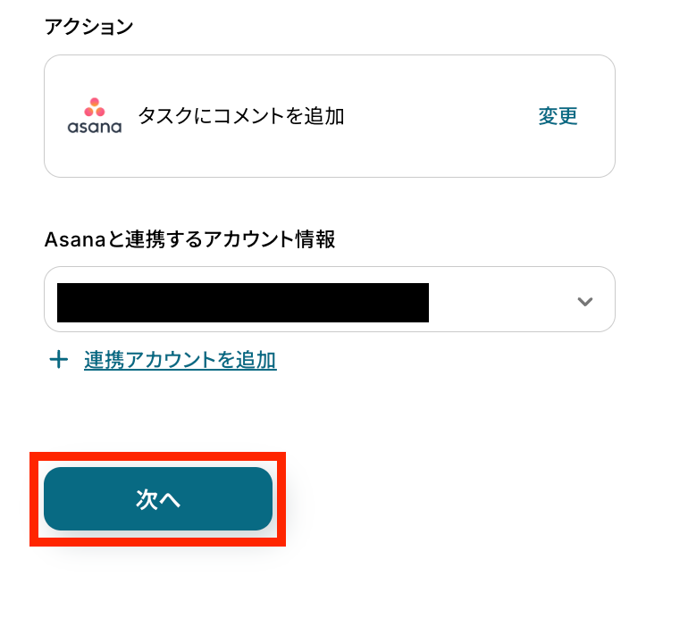 ステップ5:Asanaのタスクにコメントを追加する設定