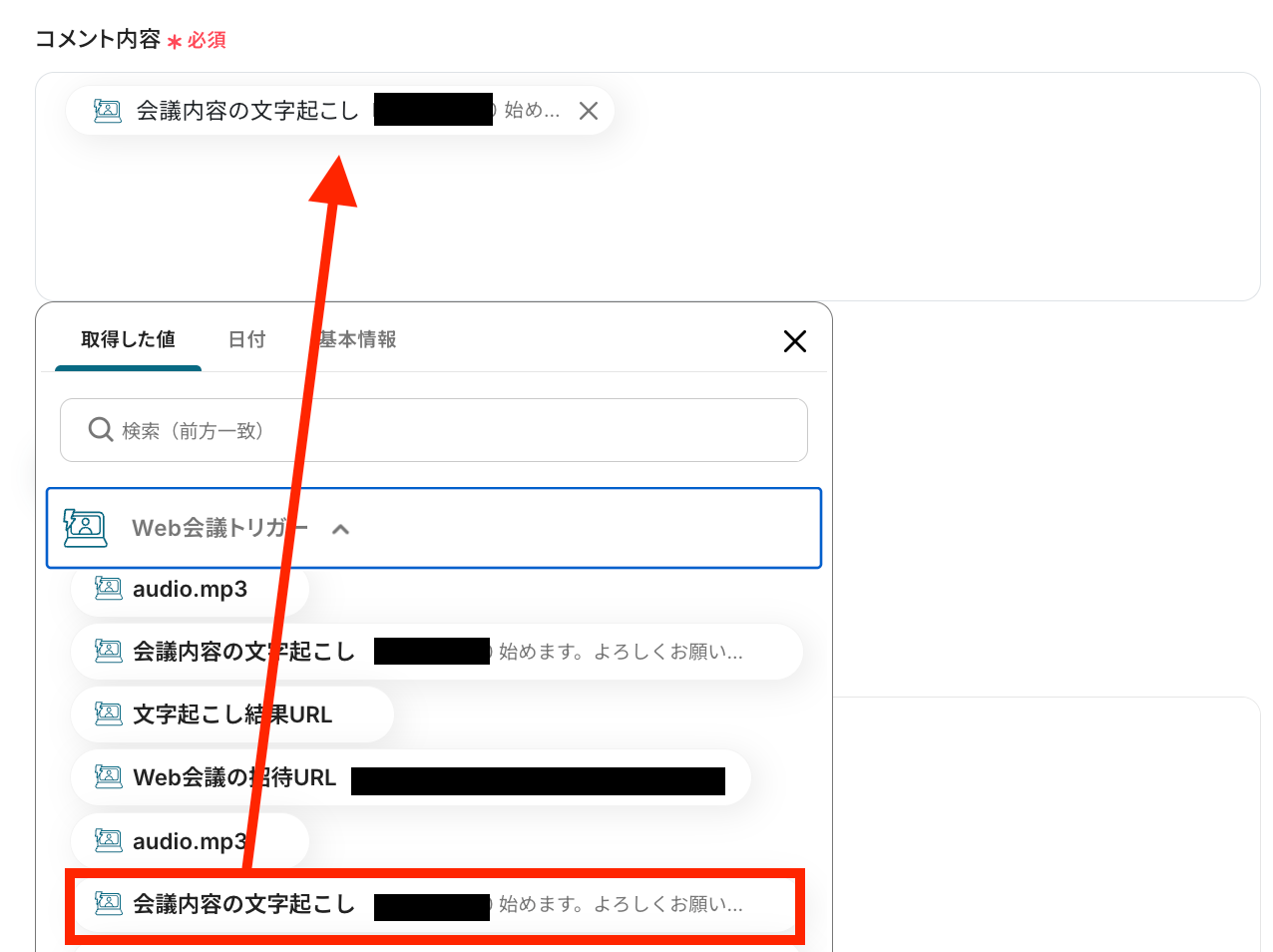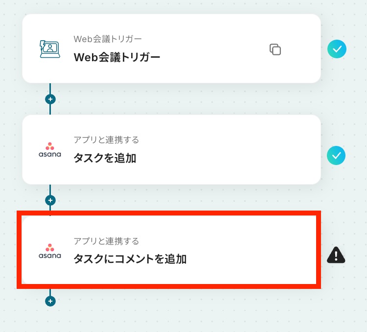 これにより、Web会議ごとに変わる情報をAsanaへ動的に反映できます。