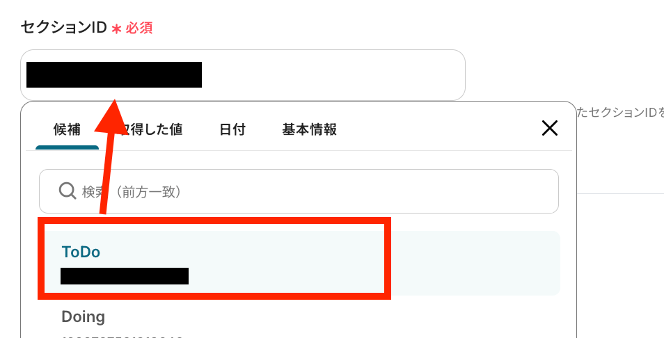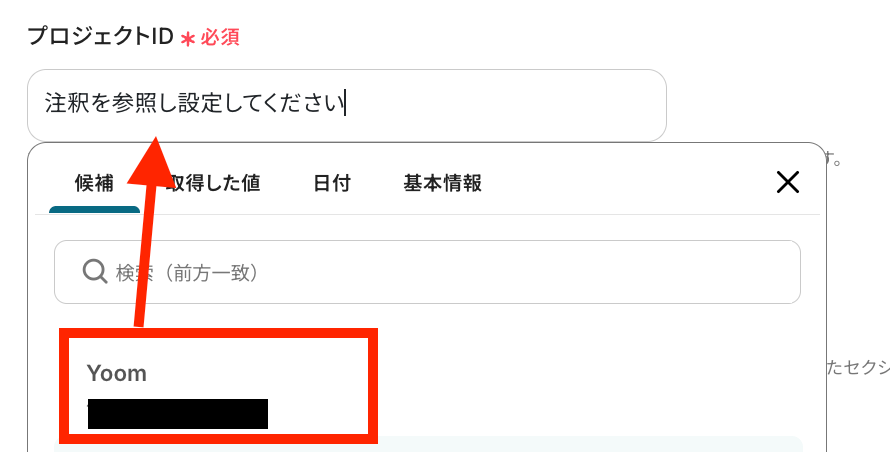 タスクを作成したいプロジェクト先のIDを、候補の中から選択して設定します。