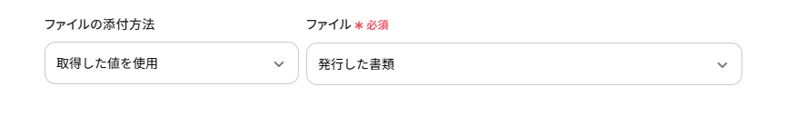 「ファイルの添付方法 :取得した値を使用」 「ファイル :発行した書類」 になっていることを確認したら、テストボタンをクリックしてください。