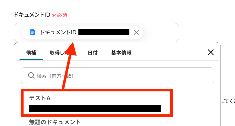 ドキュメントIDは、ステップ4で取得した値から選択します。