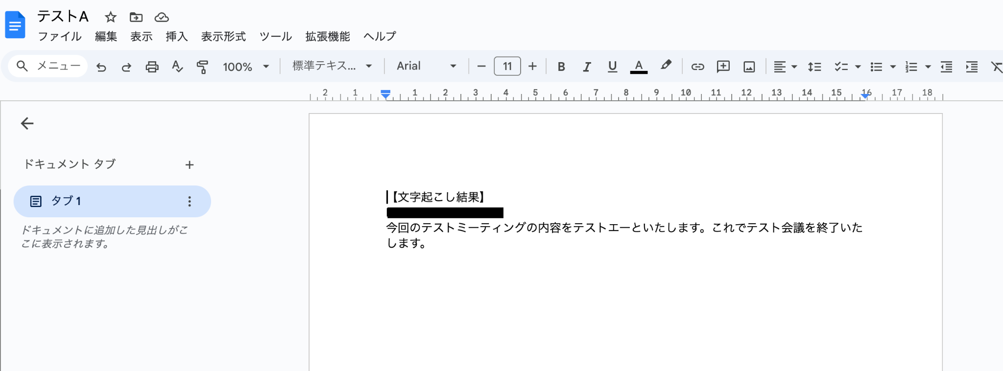 テスト成功で、Googleドキュメントに会議内容が追加されています!