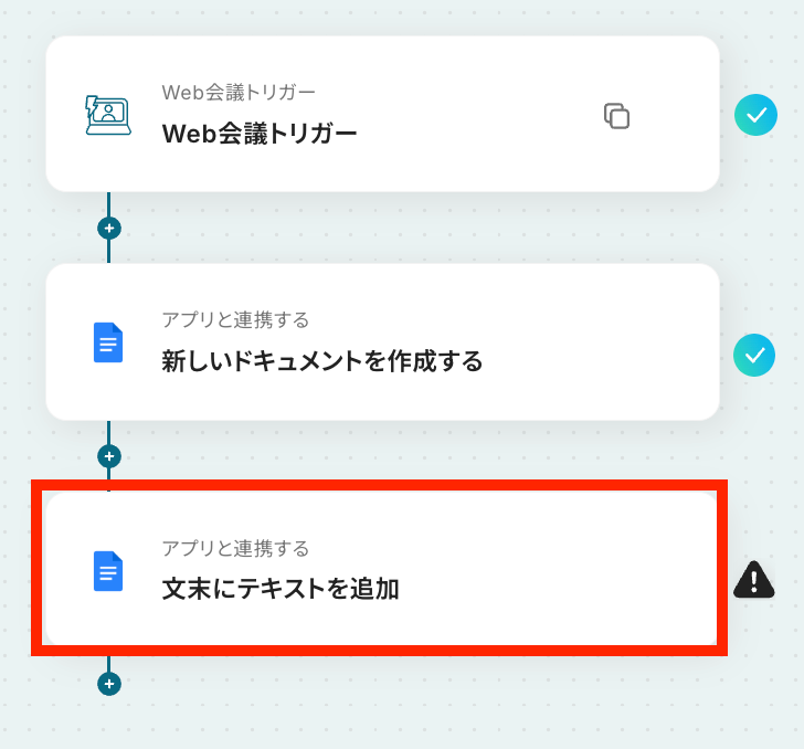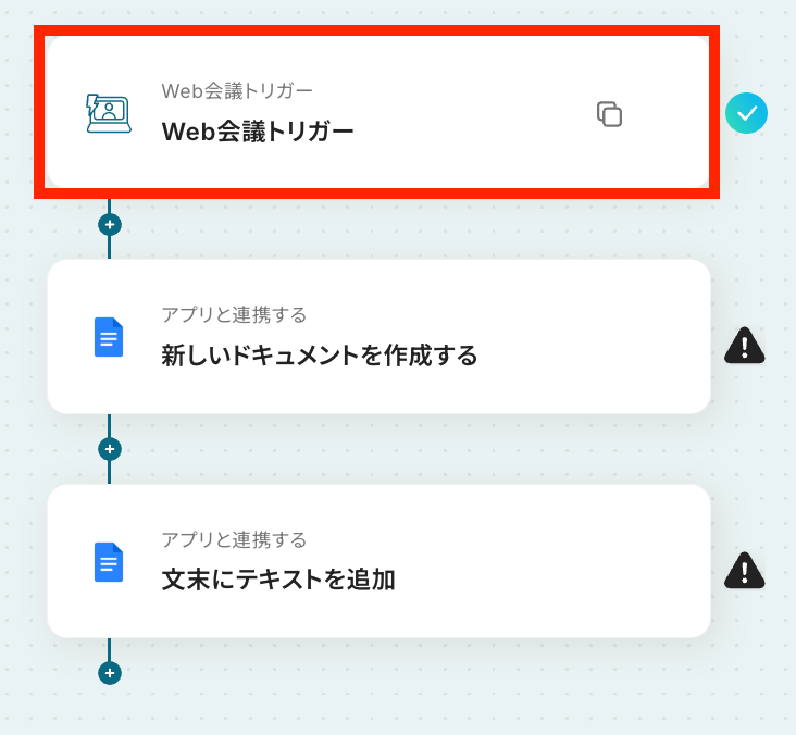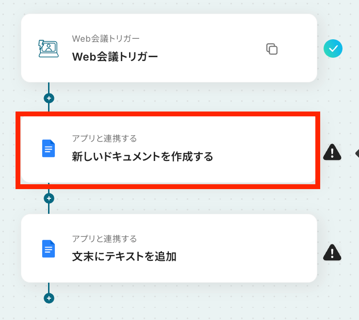 - Web会議トリガーとGoogleドキュメントのアクションを設定する