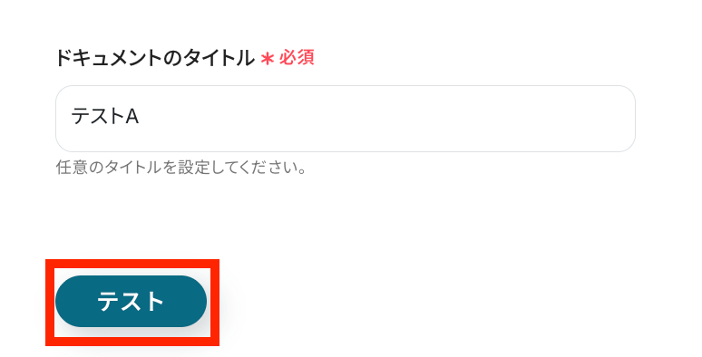 「テスト成功」と表示がされたら、 Googleドキュメントに新規ドキュメントが作成されています。