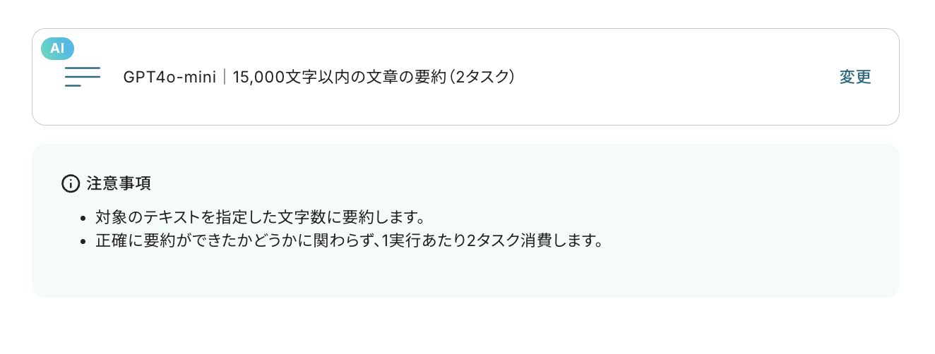 文字数を指定します。任意で要約の条件などを細かく指定が可能です。