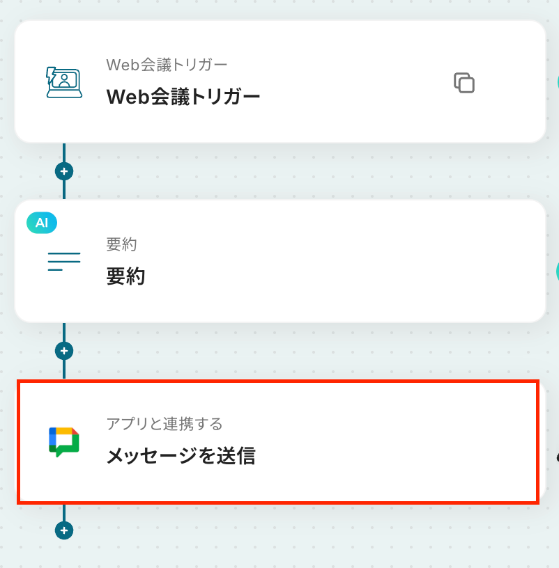 ステップ5:Google Chatでメッセージの送信 いよいよ最後のステップです! 要約ステップで取得した値を利用して、Google Chatでメッセージを送信しましょう。