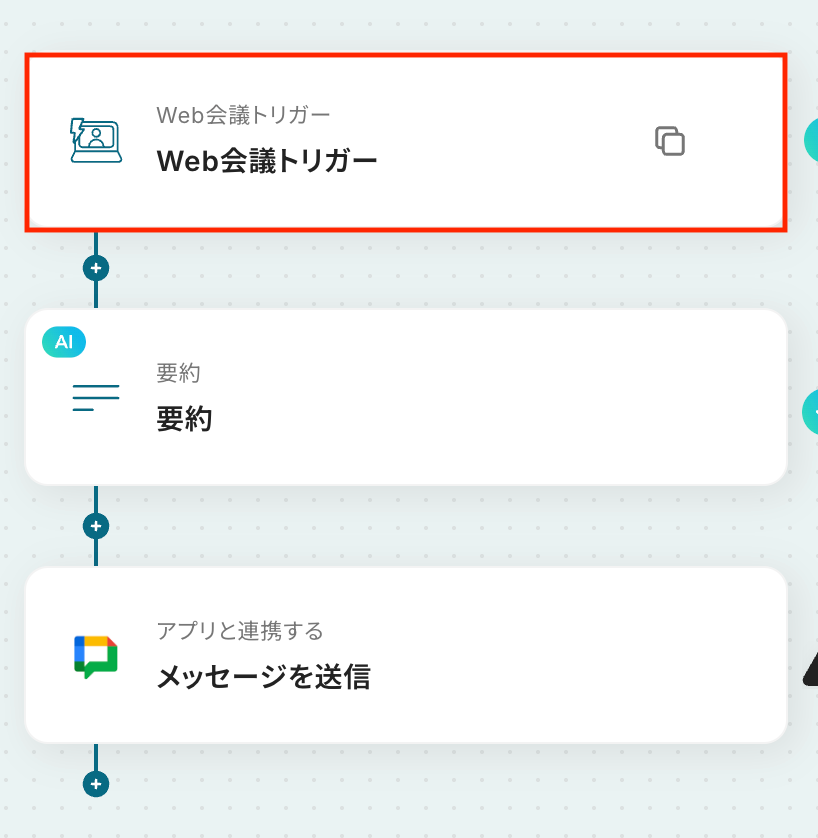 Web会議トリガー設定と要約設定およびGoogle Chatのアクション設定