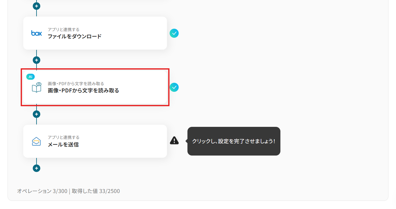 ・OCRのAIオペレーションはチームプラン・サクセスプランでのみご利用いただける機能となっております。フリープラン・ミニプランの場合は設定しているフローボットのオペレーションはエラーとなりますので、ご注意ください。