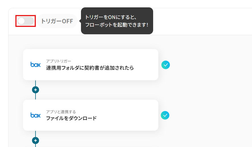 あとで稼働させる場合は、フロー画面のトリガースイッチをクリックすることで、トリガーをONにできます。