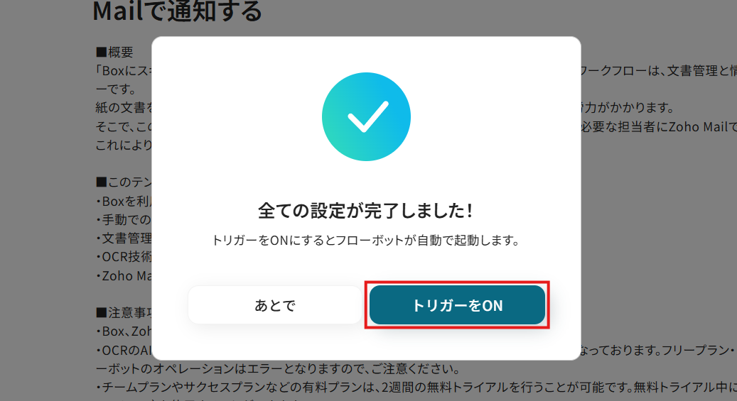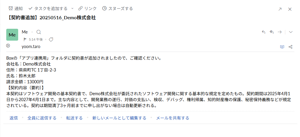 Boxにスキャンした請求書や契約書などのPDFをアップロードした後、その内容を確認してZoho Mailで関係者に通知する作業に、手間を感じていませんか。