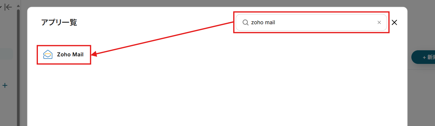 - 「アプリ一覧」が表示されたら、右上の検索バーでアプリ名(ここではZoho Mail)を検索して選択。