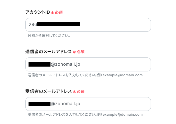 - 「アカウントID」にメール送信を行うアカウントのIDを設定。