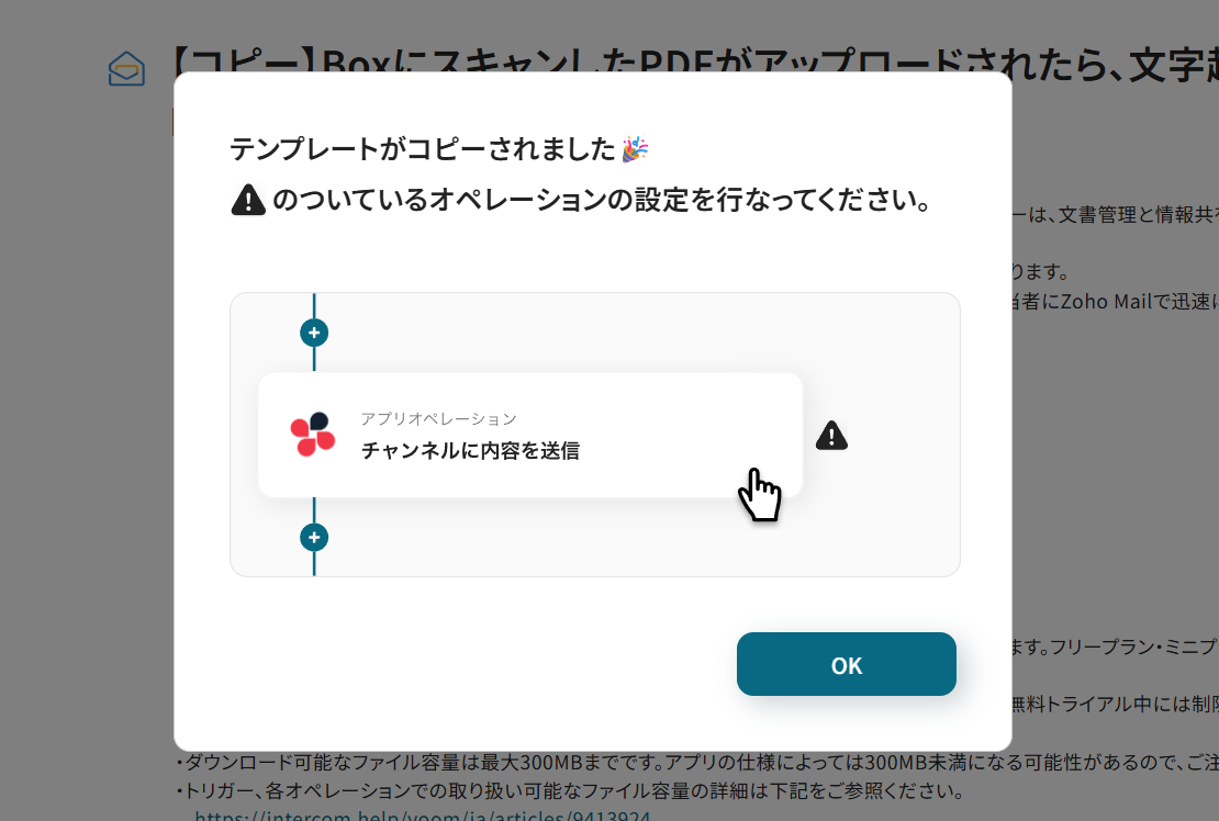 それでは代表的な例として、「BoxにスキャンしたPDFがアップロードされたら、その内容を自動で文字起こしし、抽出されたテキスト情報をZoho Mailで担当者に通知するフロー」を解説していきます!