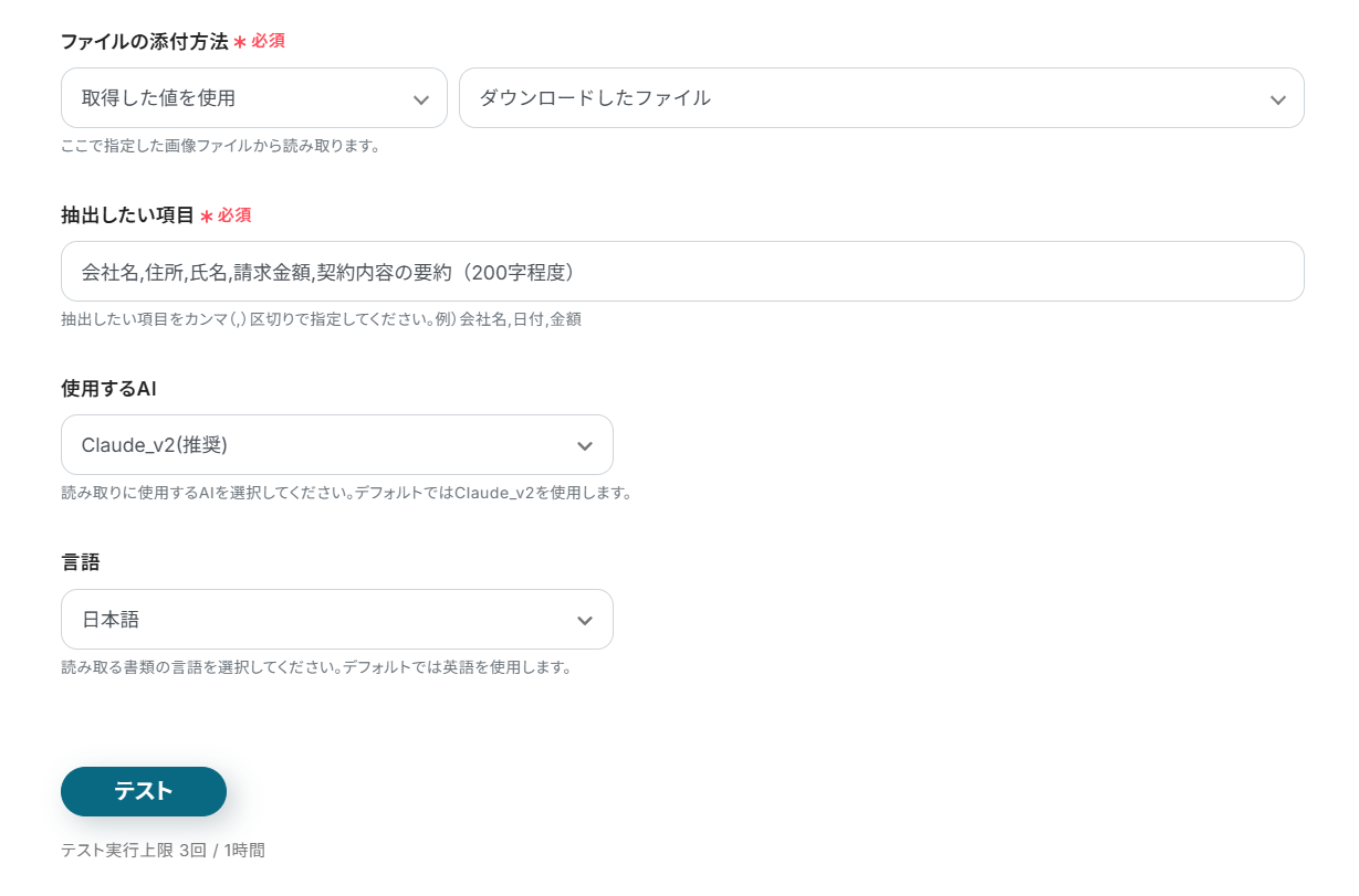 ※ 期待する値が抽出されていない場合には、「使用するAI」を変更して再度お試しください。
