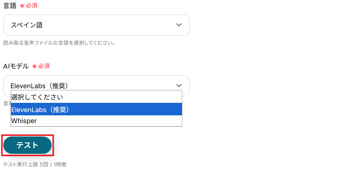 ステップ5:文字起こし設定