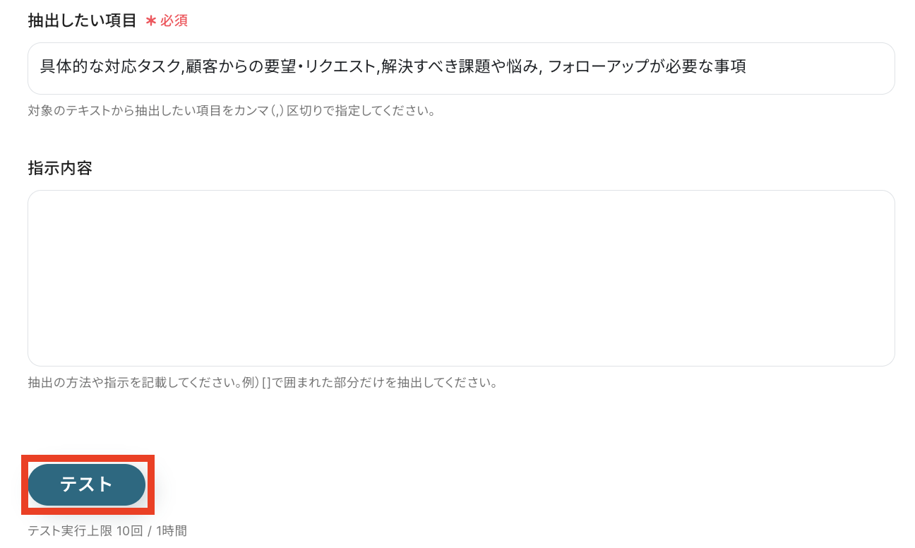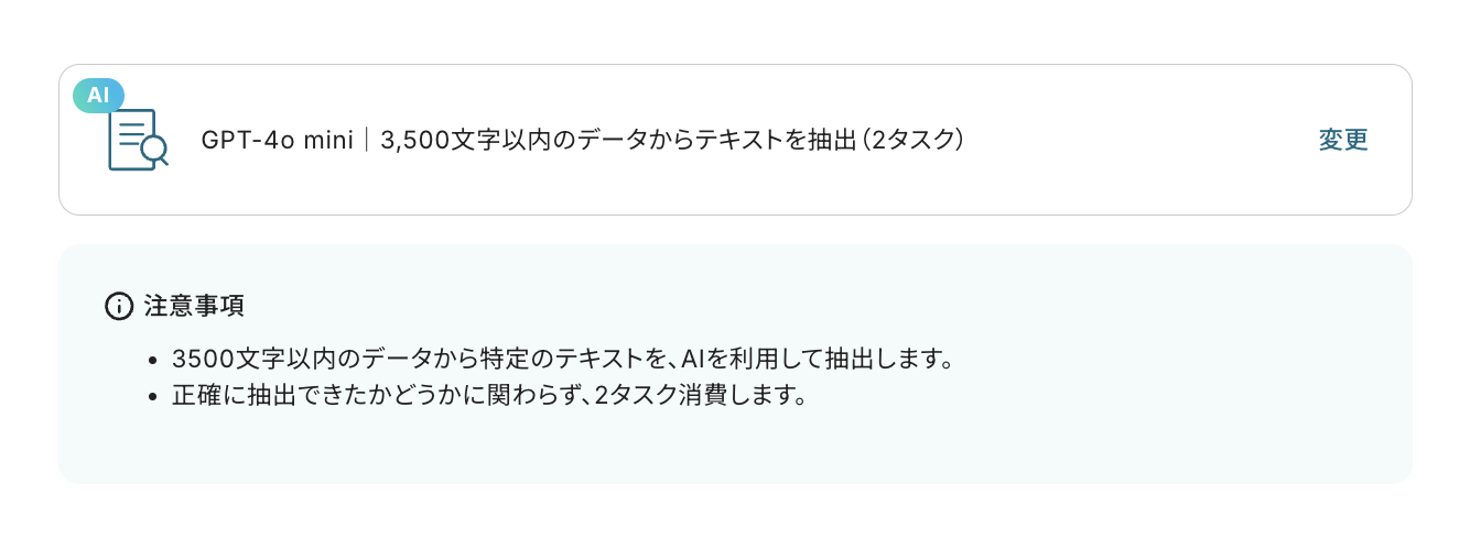 - AI機能のテキスト抽出では、抽出するテキストの項目や形式などを任意で設定できます