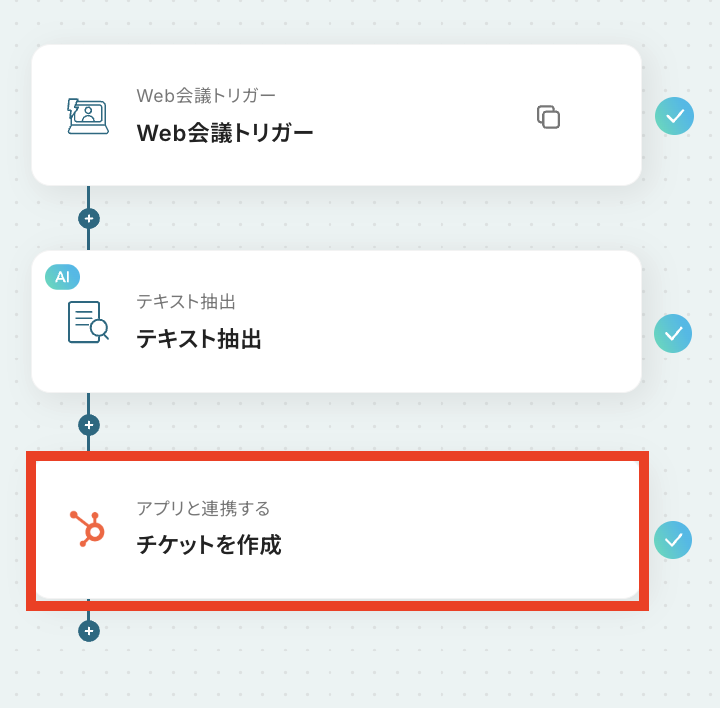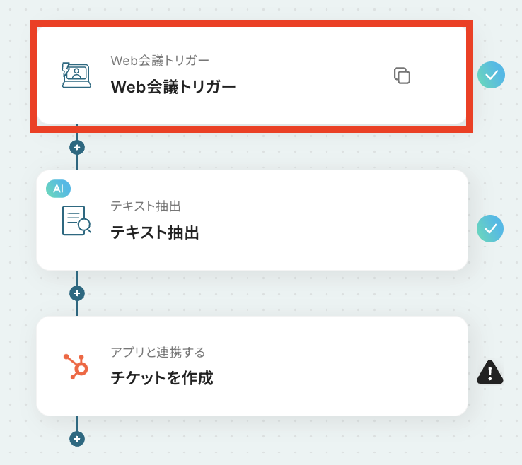 それではここから代表的な例として、Web会議が開始された際に自動で文字起こしを行い、その結果をHubSpotにチケットとして作成するフローを解説していきます!