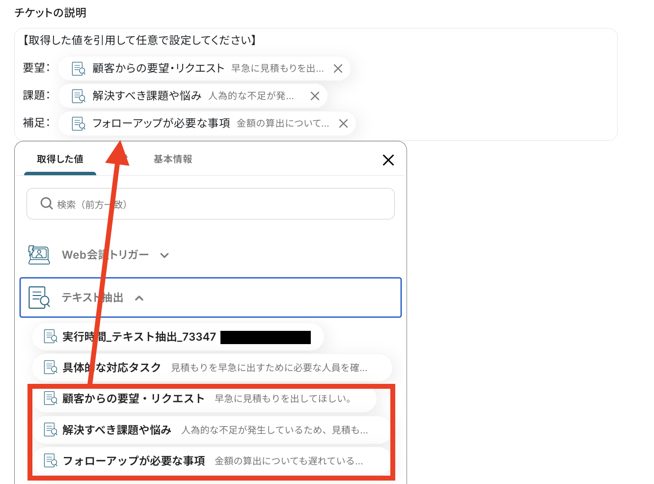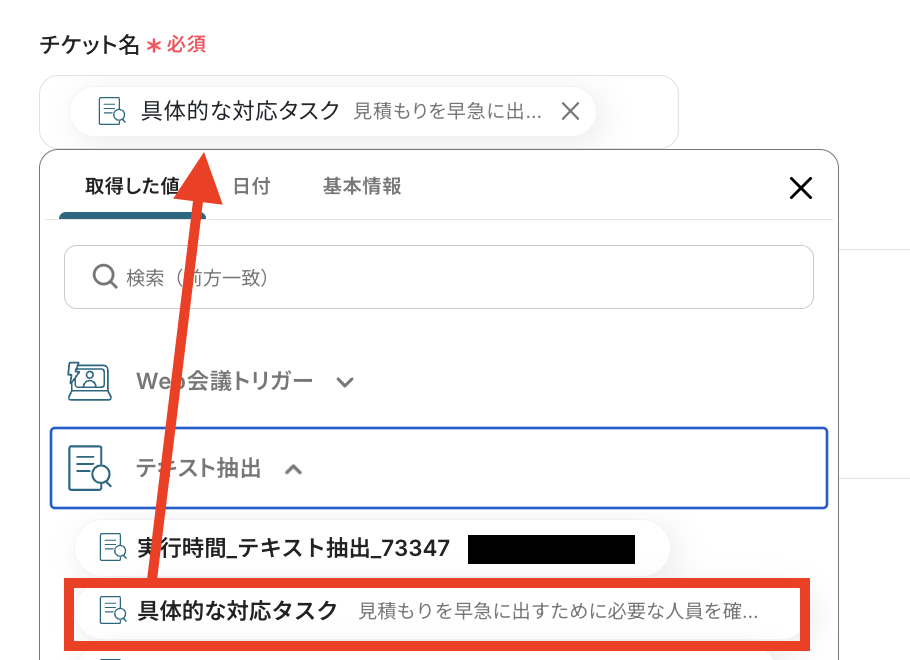 テキスト抽出で取得した値から選択しましょう!