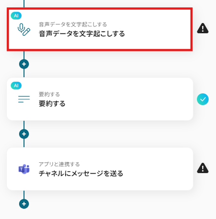 特定のキーワードを含むZoomミーティングや、特定の参加者がいた会議など、あらかじめ設定した条件に合致する会議が終了した場合にのみ、音声データを文字起こし・要約してMicrosoft Teamsに通知するフローもあります。必要な情報だけを効率的に収集・共有するのに役立ちます!