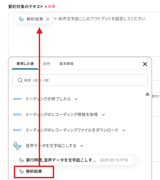 ステップ7:文字起こしデータを要約する設定