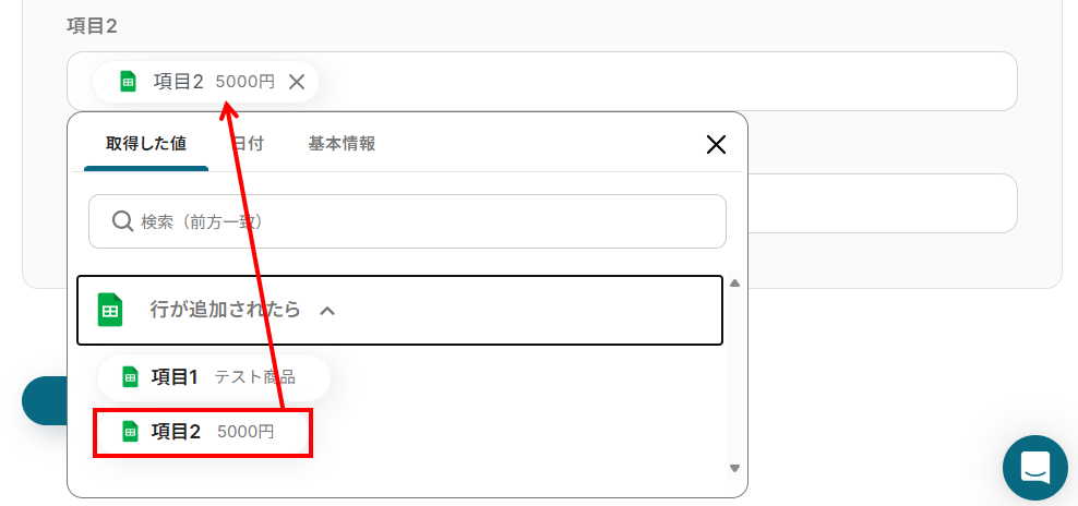 3.次に、先ほど設定したGoogle スプレッドシートのどのレコードに追加するか具体的に設定していきます。