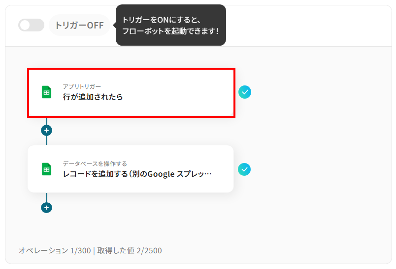それではここから代表的な例として、一方のGoogle スプレッドシートに行が追加された際に、その内容を自動的にもう一方のGoogle スプレッドシートにも行として追加するフローを解説していきます!